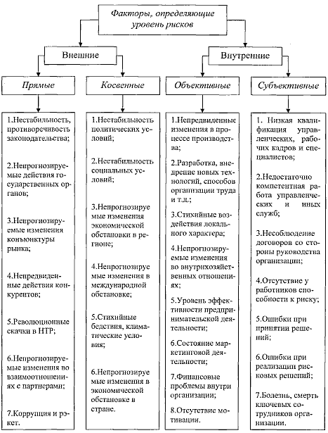Основные факторы, определяющие уровень предпринимательского риска, представлены в комбинированной классификации на рисунке 1. Схема, приведенная на рисунке 1 демонстрирует сложность и многообразие, отраженных в ней явлений.
