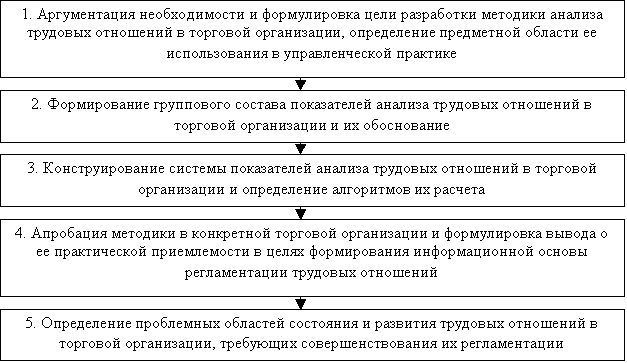 Для практического решения изложенной задачи мы предлагаем методику анализа трудовых отношений в торговой организации, последовательность разработки которой приведена на рисунке 1.