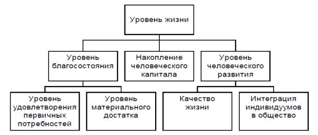 На рисунке 1 приведена структура понятия уровня жизни населения, описанная выше.