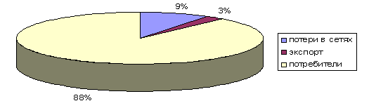 В 2011 году 88,3 % потребления электроэнергии в Казахстане приходится на население (67,1 %), промышленность (27,6 %), транспорт (2,2 %) и прочих внутренних потребителей (4,1 %), 2,6 % электроэнергии уходит на экспорт и 9,1 % теряется в сетях (рисунок 1).